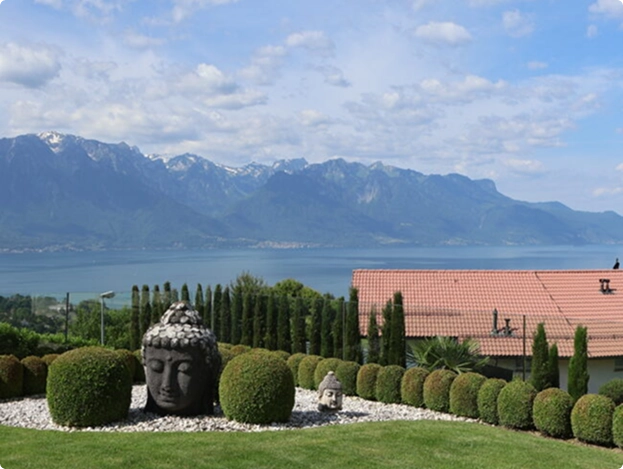 un programme complet de visites régulières, couvrant toutes les saisons (taille, tonte, traitements, arrosage).