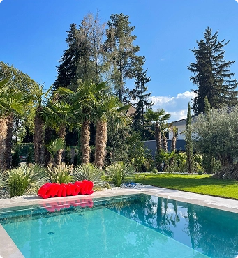 Au Garden Centre, nous ne nous occupons pas seulement de vos jardins et plantations : nous créons aussi vos espaces de détente avec des piscines extérieures sur mesure.